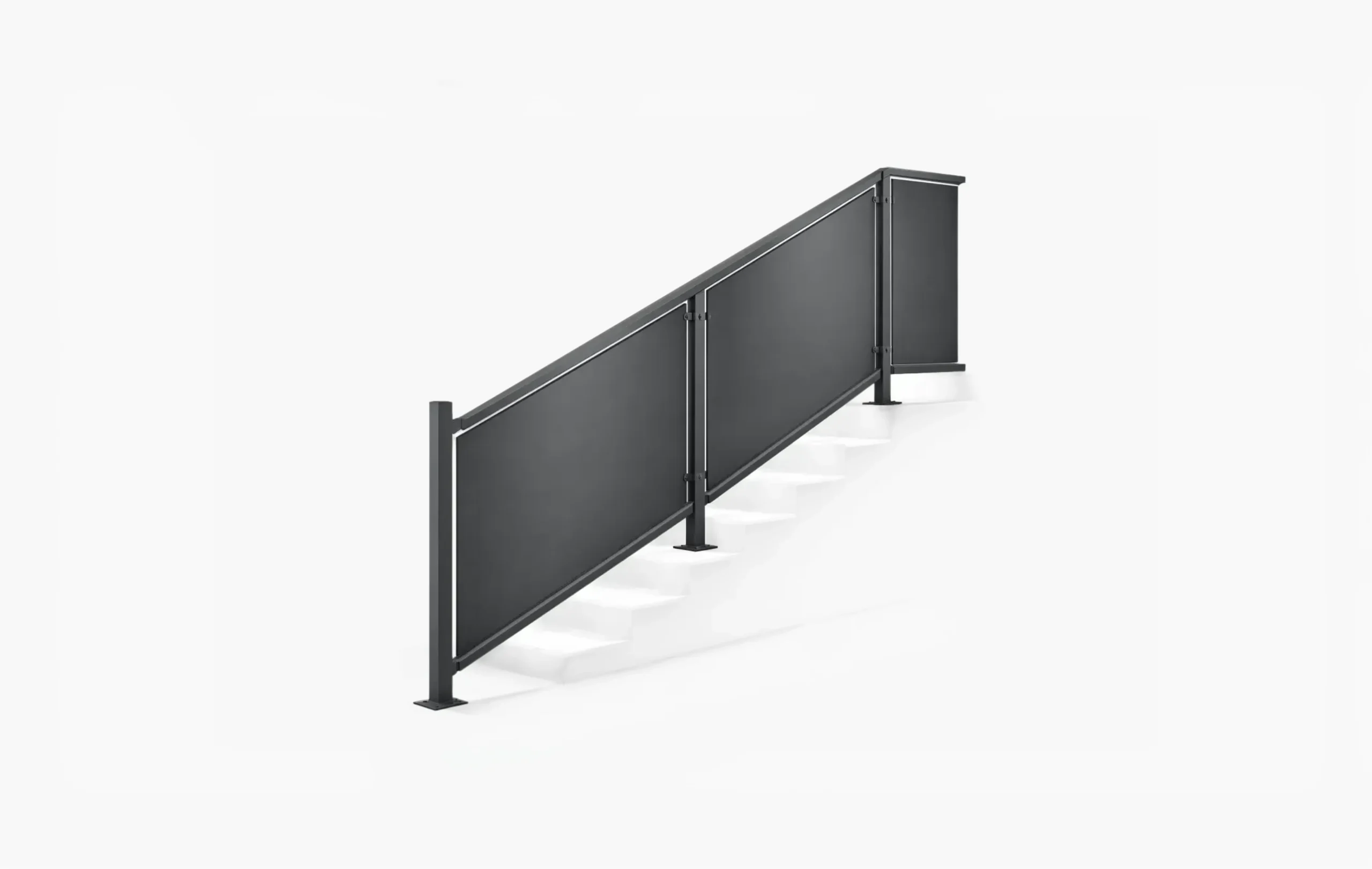 Guardas e gradeamentos em alumínio para varandas, escadas e vedações. Segurança, durabilidade e estética integrada na arquitectura.